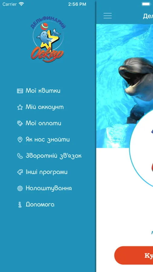 Приложение для покупки электронных билетов в Дельфинарий Оскар.