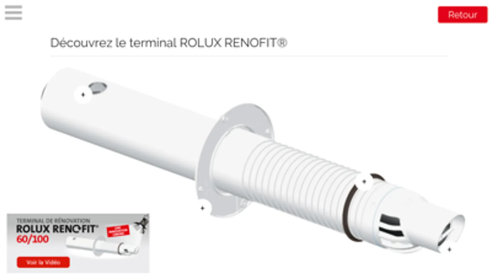 Une fois la dépose du conduit existant effectuée, procédez, pas à pas, à l’installation du terminal ROLUX RENOFIT® d’Ubbink, conçu spécifiquement pour pouvoir conserver le conduit d’amené d’air existant.