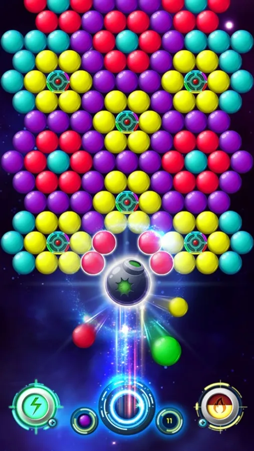 - Drop 10 bubbles in a single shot to get a bomb that will burst the surrounding bubbles.