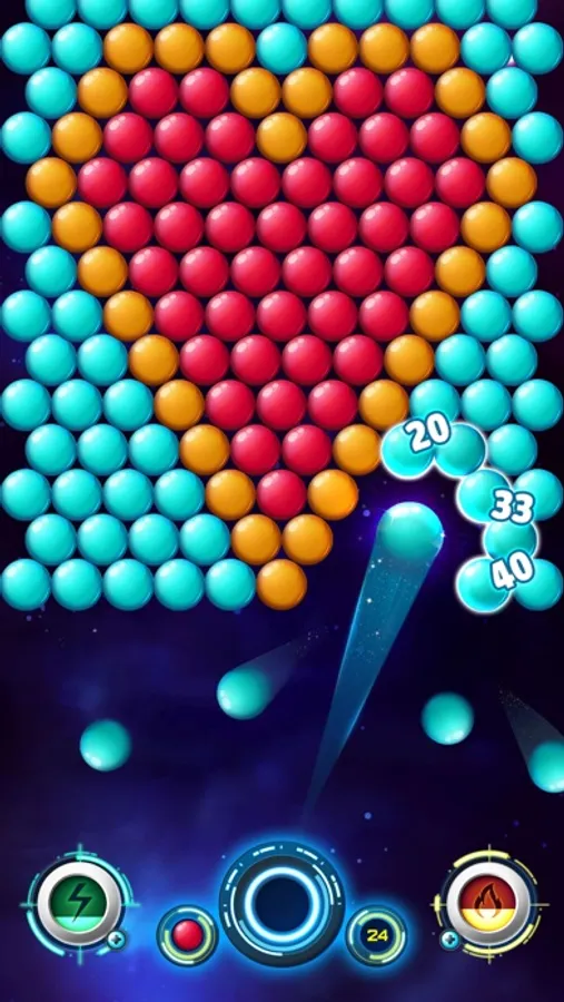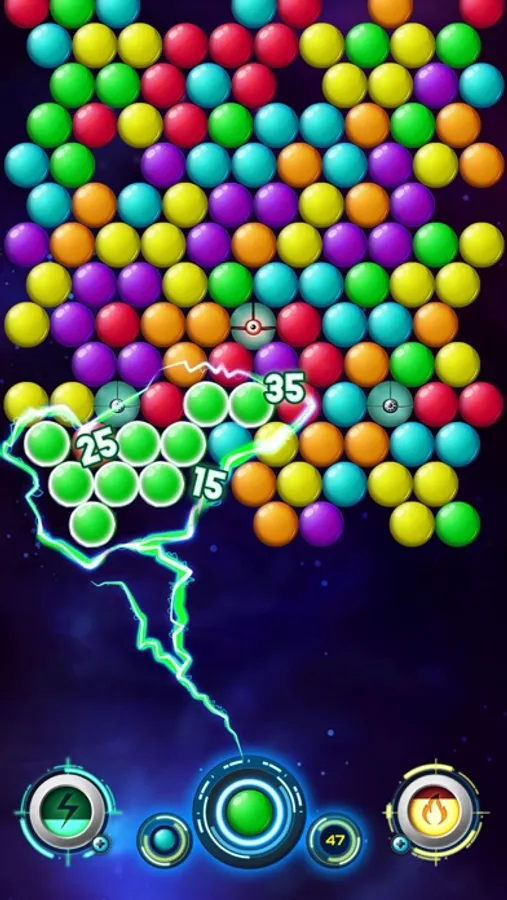 - Match at least 3 bubbles of the same color to pop the group and win points.