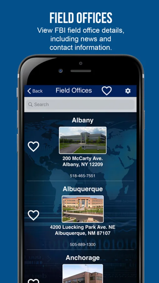 • View FBI field office details, including news and contact information.