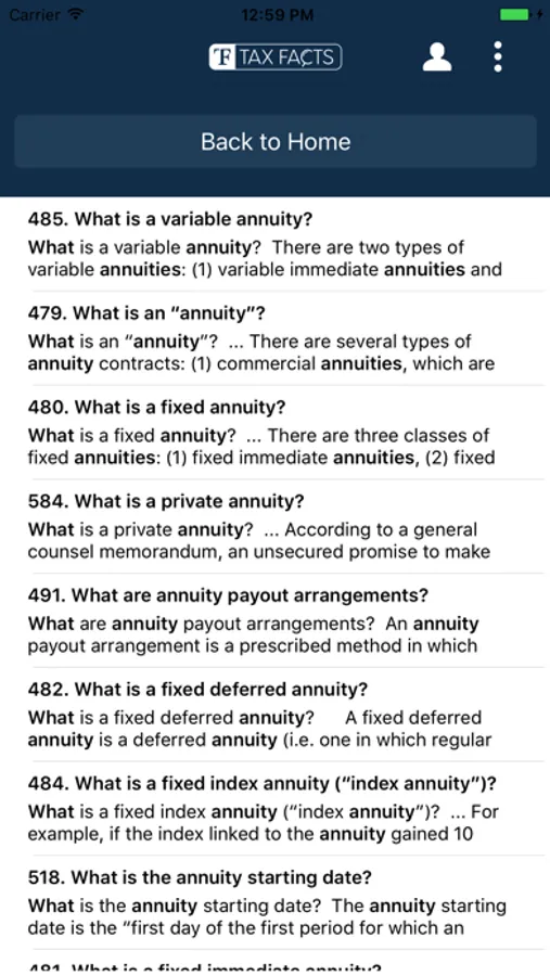 The Tax Facts App answers critical tax questions related to insurance, employee benefits, investments, small businesses, and individuals with up-to-date, easily understandable, highly authoritative, and actionable information.