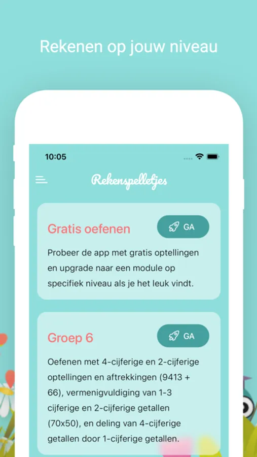 Leren rekenen en tafels oefenen op een leuke en veilige manier voor basisschoolkinderen van groep 6, 7 en 8. Optellen, aftrekken, vermenigvuldigen en delen wordt leuk met de Rekenspalletjes app.