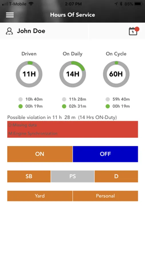 -When the vehicle is stationary for 5 minutes or more, the mobile device will default to on-duty not driving and the driver must enter the proper status