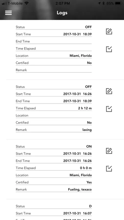 -Mobile device permits duty status changes only when the vehicle is at rest