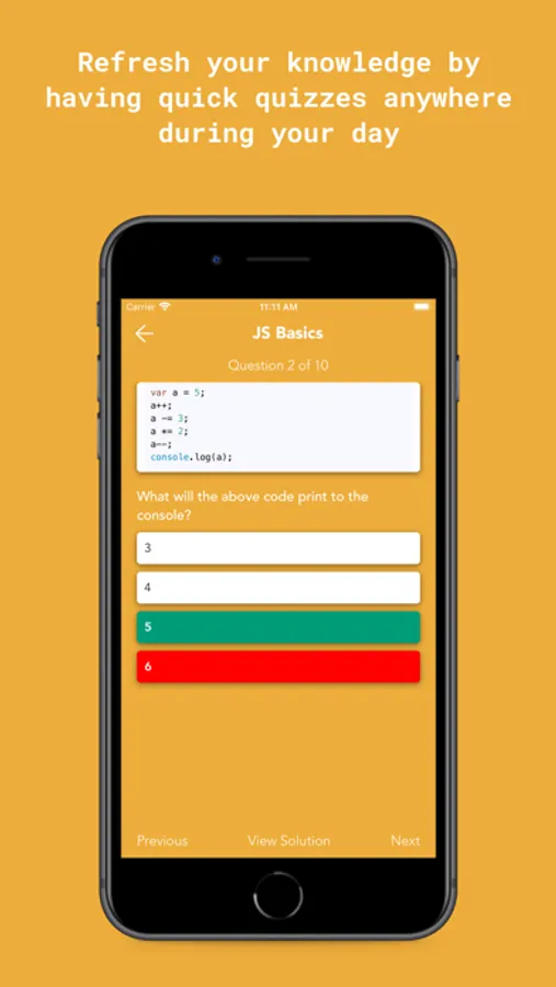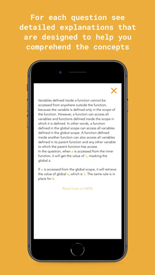Whether you are an experienced developer or a beginner, you'll find questions and explanations in this app that will help you learn and practice. Some quizzes are designed to understand the basics, while others targeting tricky parts of the Javascript language that we developers encounter time to time.