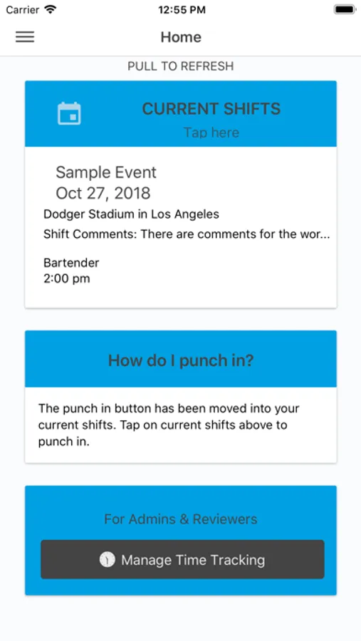 The RoostedHR, formerly Schedulehead, event staff scheduling app allows your workers to view current shifts, check in or bail out, sign up for new shifts, clock in and out of shifts, and get help, all within the app!