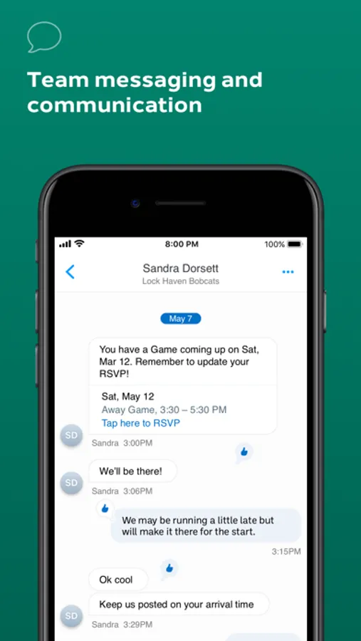 TEAM MESSAGING: Send important announcements, schedule updates, and last-minute changes to the whole team with just a few taps.