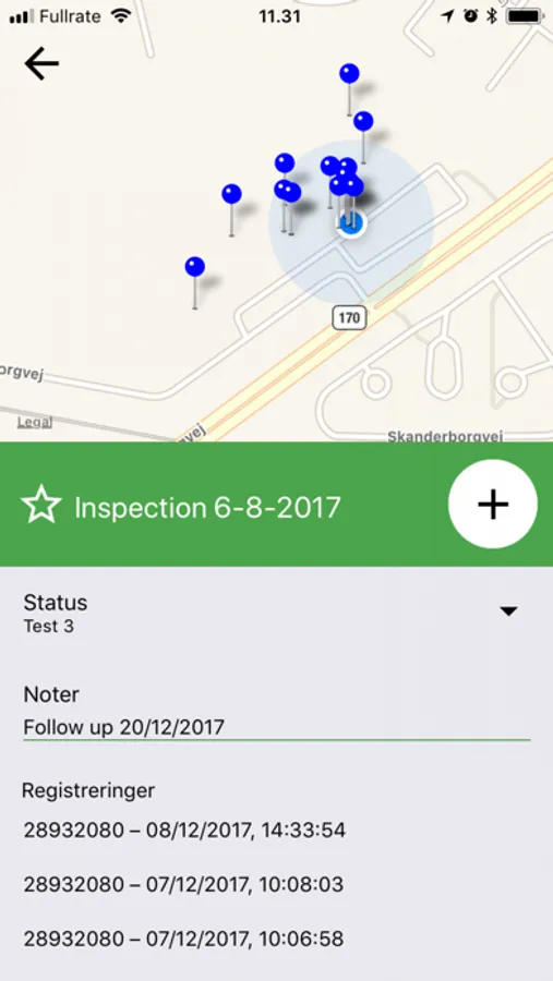 ‣ Time, place and user/inspector are automatically registered for each inspection