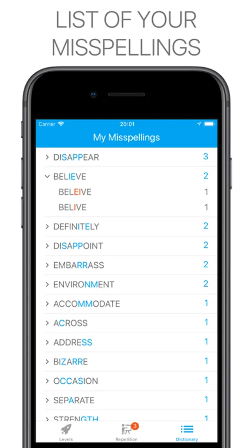 The "Scholar" has over 600 commonly misspelled words. By doing test you will learn which way to spell these words and not make mistakes when using them in day to day activities. The "Scholar" is proven to be the fastest and most effective way to improve your spelling.
