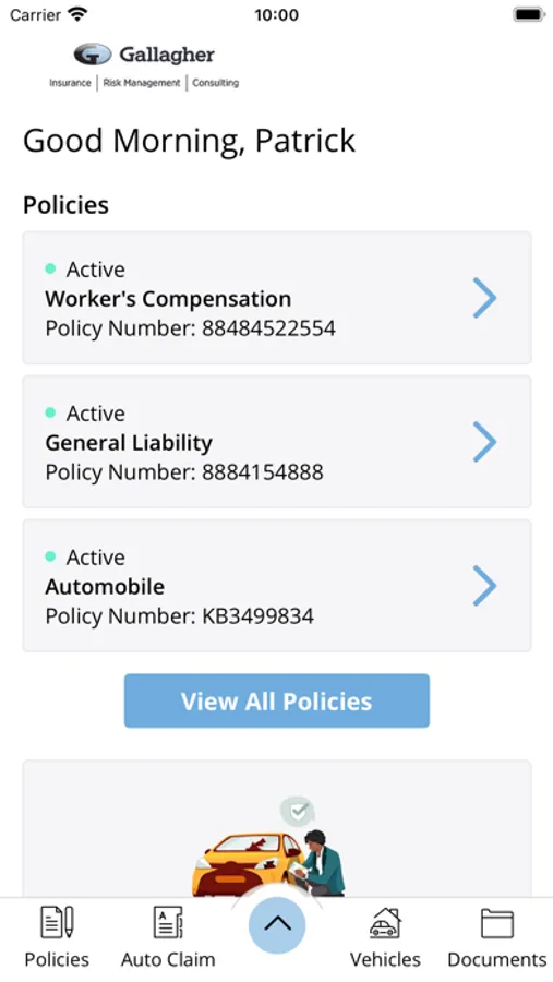 Gallagher Go is a powerful app designed to give you quick and easy access 24/7 from wherever you are to your personal insurance account. With the app, you can view, download and email your liability slips. You can also report a claim, manage vehicles and drivers. To reach your client service team, you can phone or email them using the app. If your circumstances change, you can use the app to submit a change of address, phone or email.
