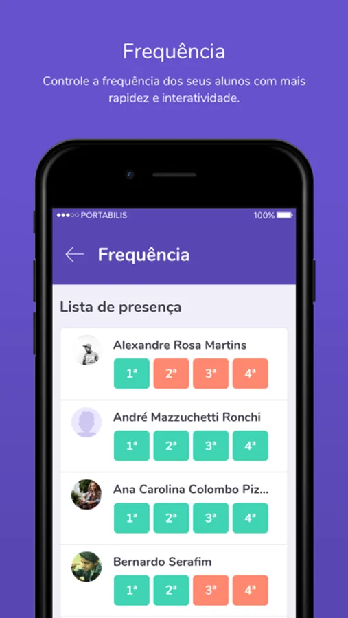 Use o Diário Portabilis para registrar frequências, adicionar conteúdos de aulas e consultar planejamentos de ensino e aulas. Tudo isso on-line ou off-line.
