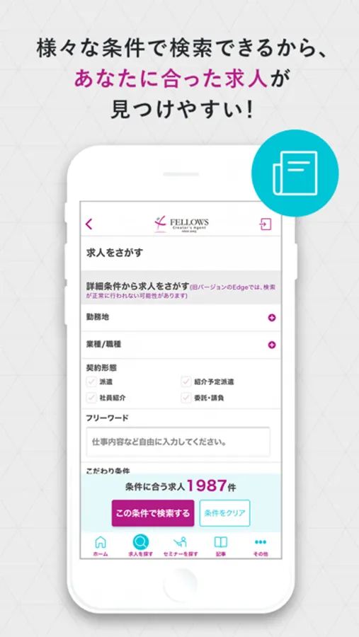勤務地、業種、契約スタイル、こだわり条件などで、あなたにぴったりの求人がすぐに見つかります。