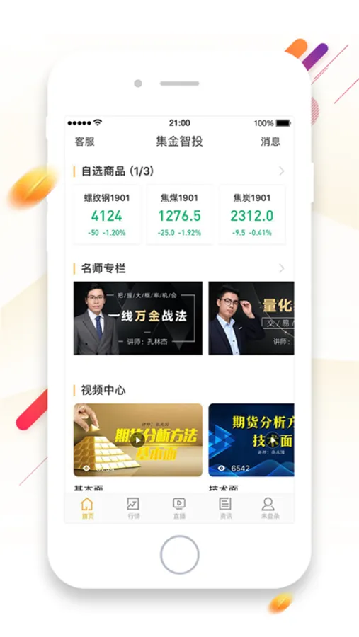 集金智投-金融期货行情资讯软件,随时随地查看期货黄金、白银、原油、螺纹钢、焦煤、焦炭、橡胶、铁矿石、棉花、动力煤等优质期货品种最新价格!