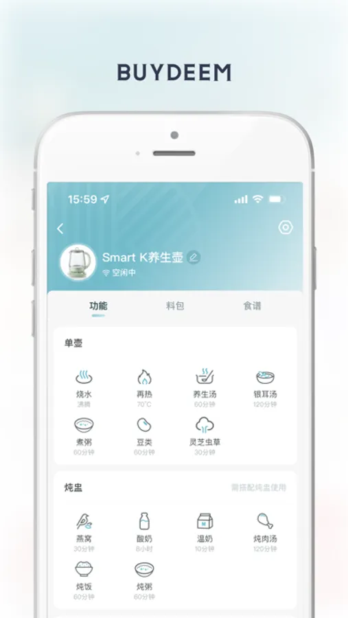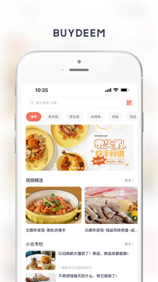 北鼎BUYDEEM 应用,集合自营电商、智控设备连接、丰富食谱与社区活动和售后服务的品牌自营平台。