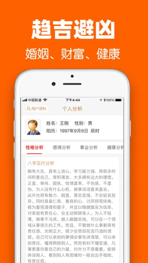 〖分析全面〗事业、婚姻、财运、健康等讲解全面独到,精确预测分析你的人生运势。