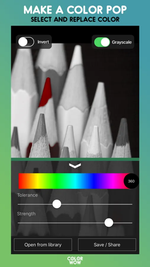 Introducing the newest selective color app! Color Wow helps you to create a color pop effect on your photos. Make your images black and white while keeping one color. Color Wow also allows you to change the color of an object in a color photo.