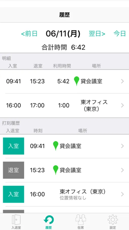 ・ビーコンによる場所(位置情報)に紐づいた入退室情報の記録ができます。