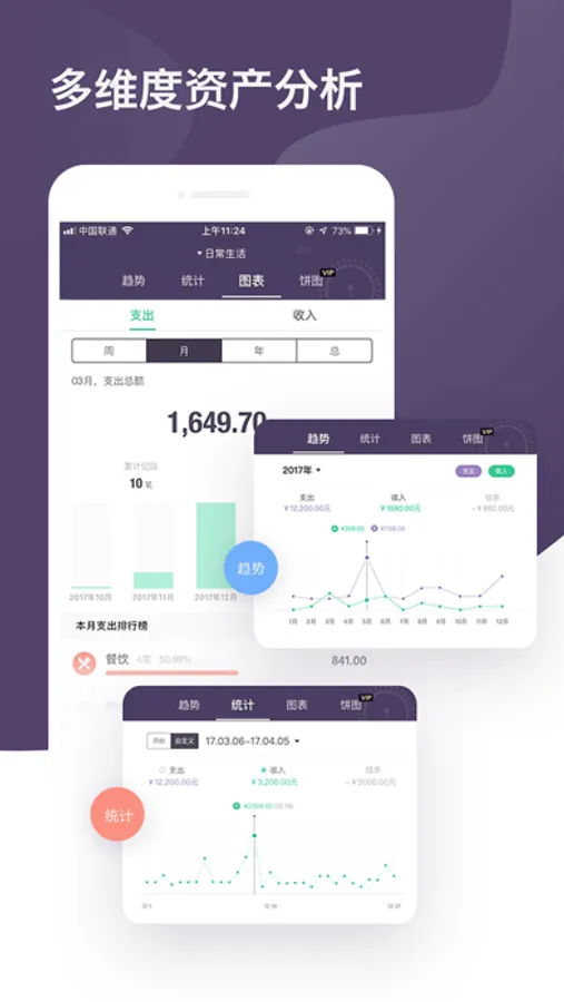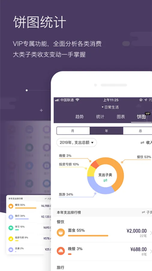 年度趋势、月度分析、日历等可视化的数据展示,让您的账单一目了然!