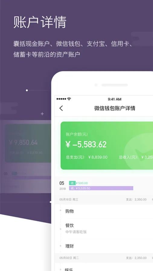 囊括现金、微信钱包、支付宝、信用卡、储蓄卡等最前沿的资产账户。