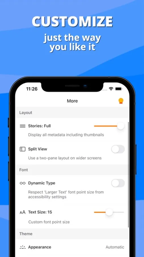 • ACCESSIBLE: Increase or decrease the text size to one that's comfortable for you, or enable 'Dynamic Type' to use the system's 'Larger Text' font size. And VoiceOver is fully supported!