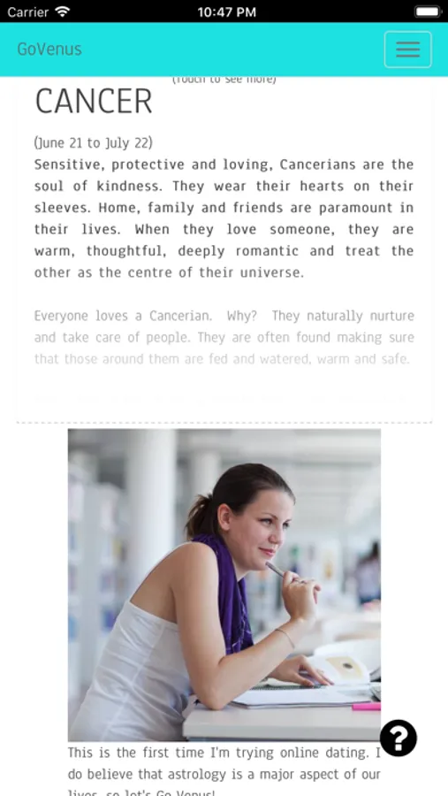 GoVenus is a visionary space for people to make authentic romantic connections. Using the principles of astrology, GoVenus helps you learn about the astrological profile of members of GoVenus that match your astrological profile helping you make authentic romantic connections.