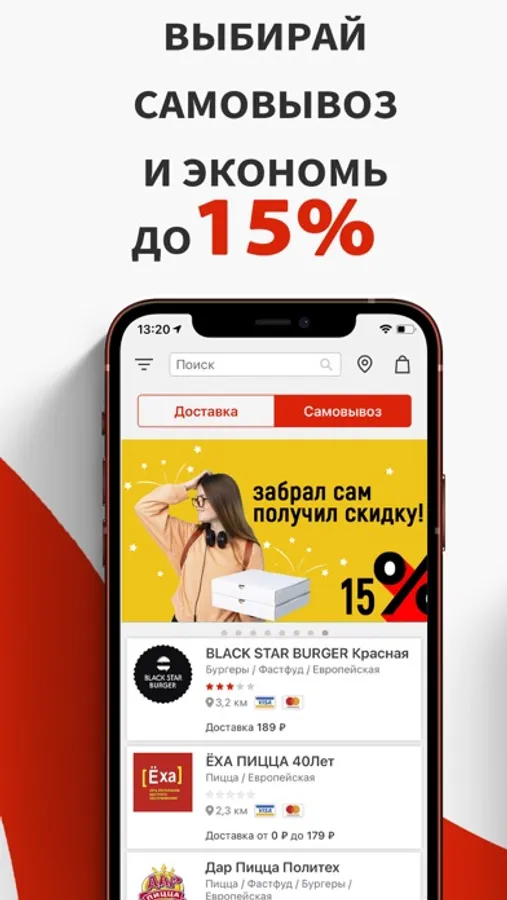 - Доставка еды в термосумках в течение 45 минут собственной курьерской службой.