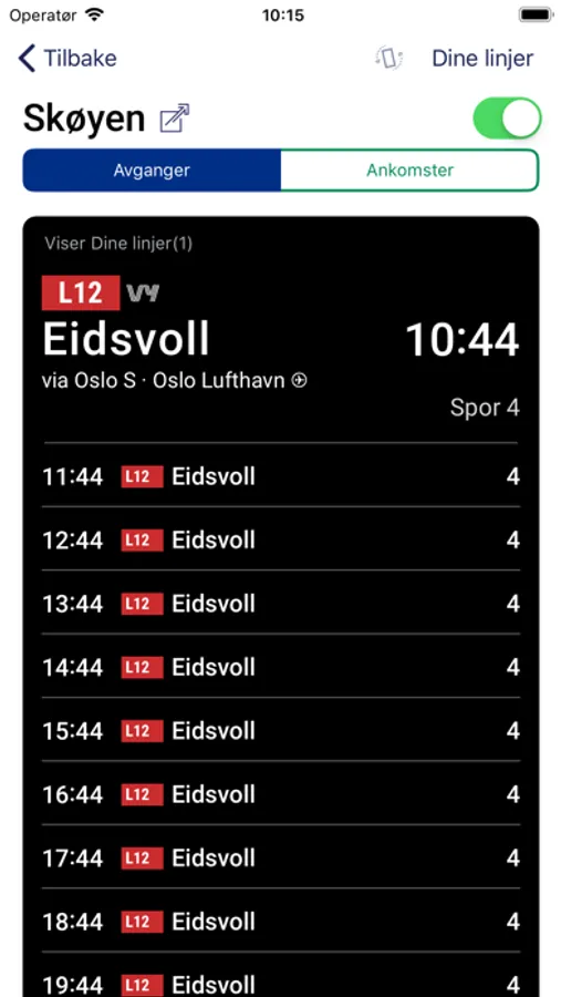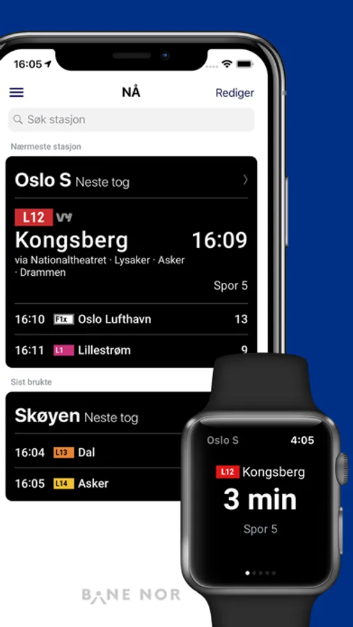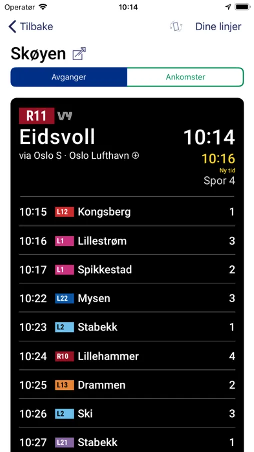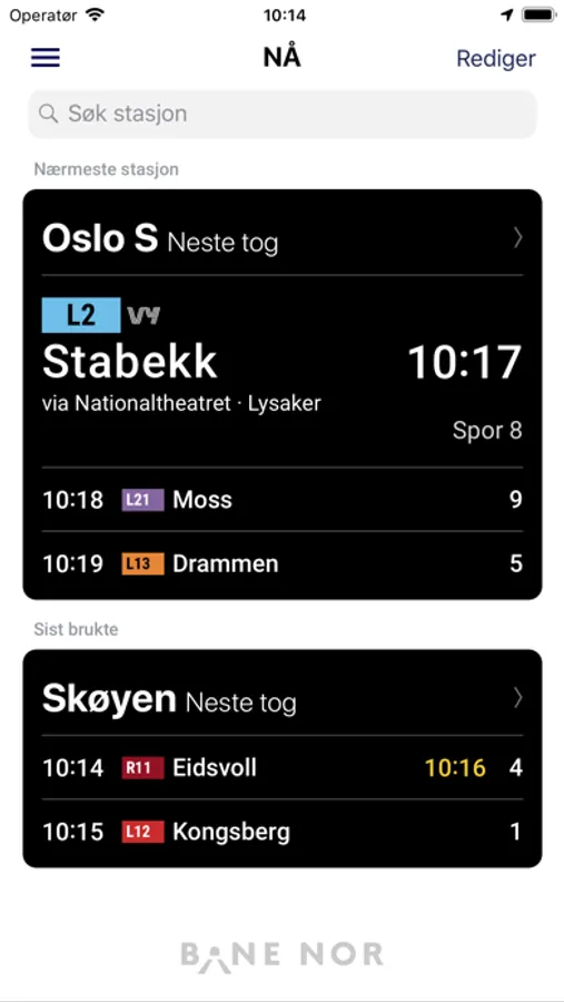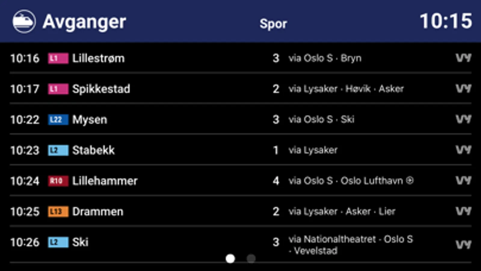 In this application you get a complete overview of all arrivals at and departures from Norwegian train stations.