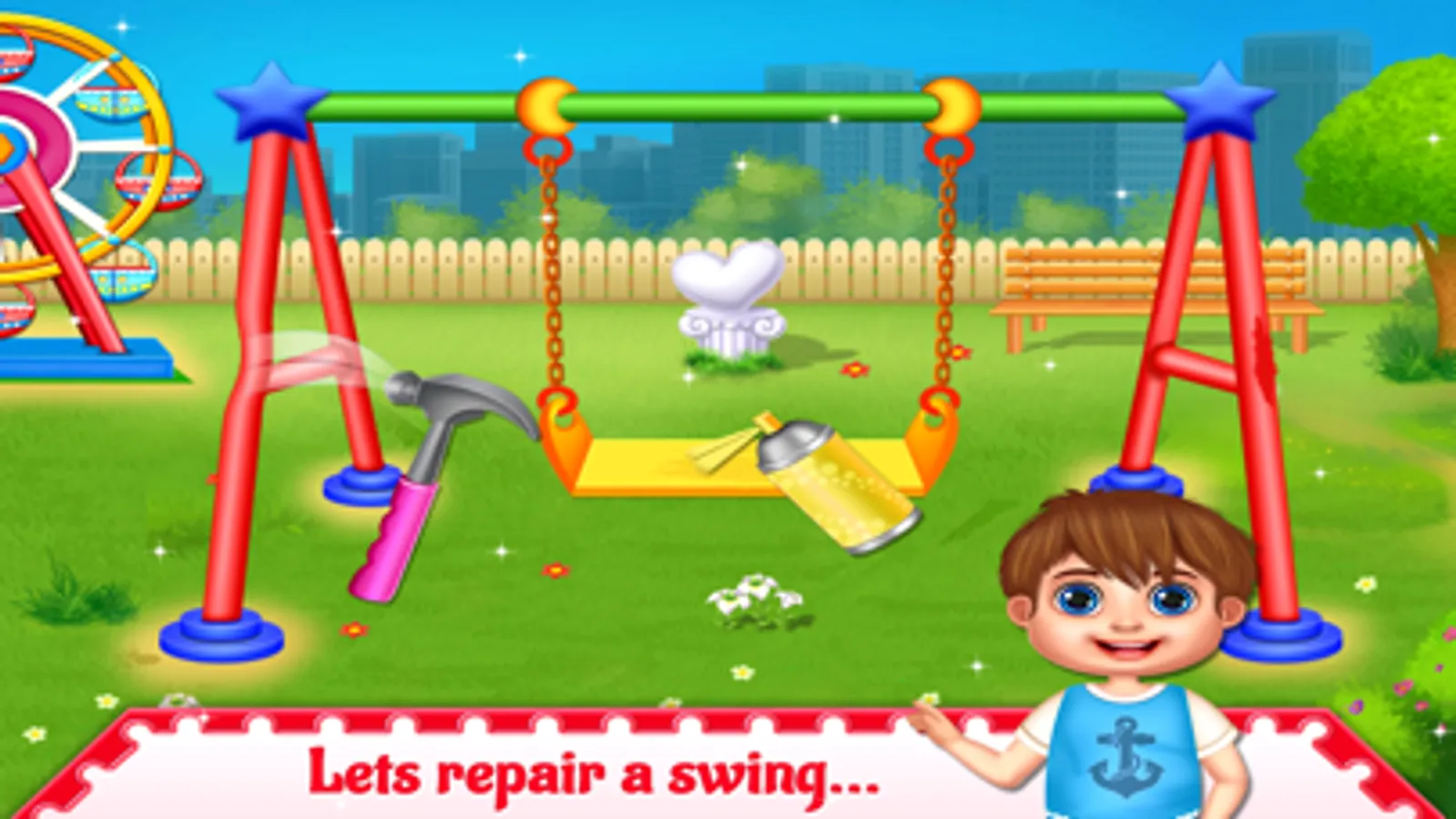 Hello friends, Welcome to the Kids Amusement Park Cleanup and Repair! In this kids theme park game you'll get fun of rides like ferris wheel, kids slider and bouncy spring horse and many more amazing rides. Let's enjoy in the amusement park with all of your friends. But wait! Park is too dirty and all rides needs some fixing before you can use it. So you've to become handyman and repair the rides and clean up the messy park.