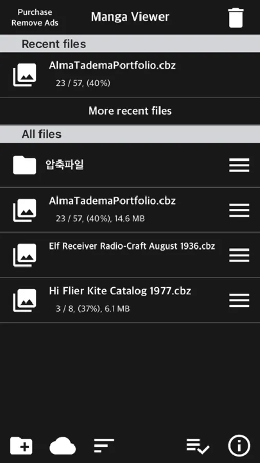 - zip, rar, 7z, cbz, cbr, cb7 compressed files are supported (png, jpeg, jpg, gif, bmp, tif, tiff extension images are included, webp format is supported from iOS14)