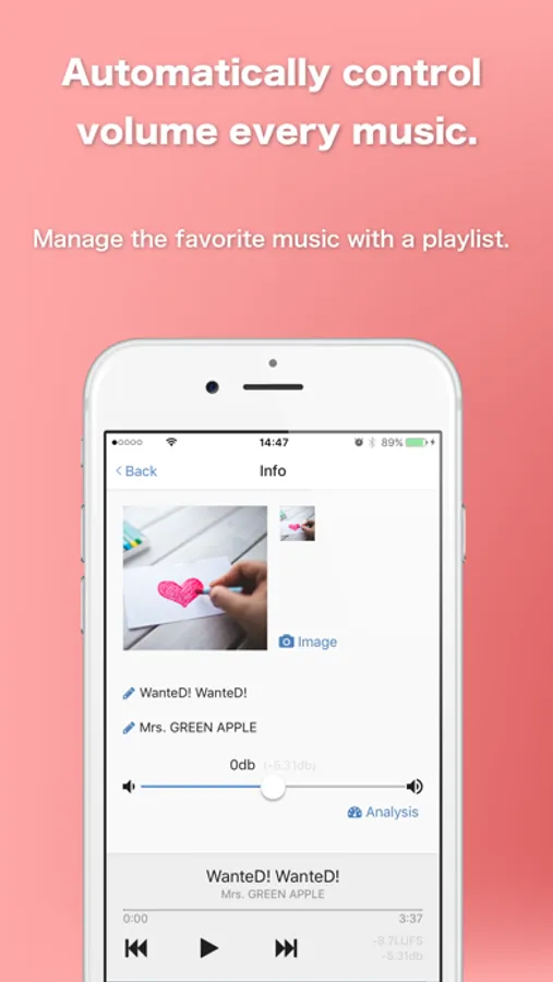 PIM player automatically analyzes sound pressure (LUFS) of the music and reproduces at the most suitable volume.