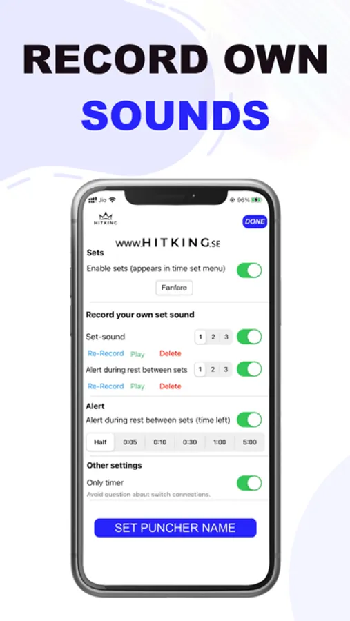HITKING® is a professional easy-to-use interval timer that simplifies your training. The interval timer comes with useful features and the ability to record your own sounds and reminders. This makes the timing easier, more efficient and makes the workout more motivating to carry out. We have also integrated a hitcounter function for boxing.