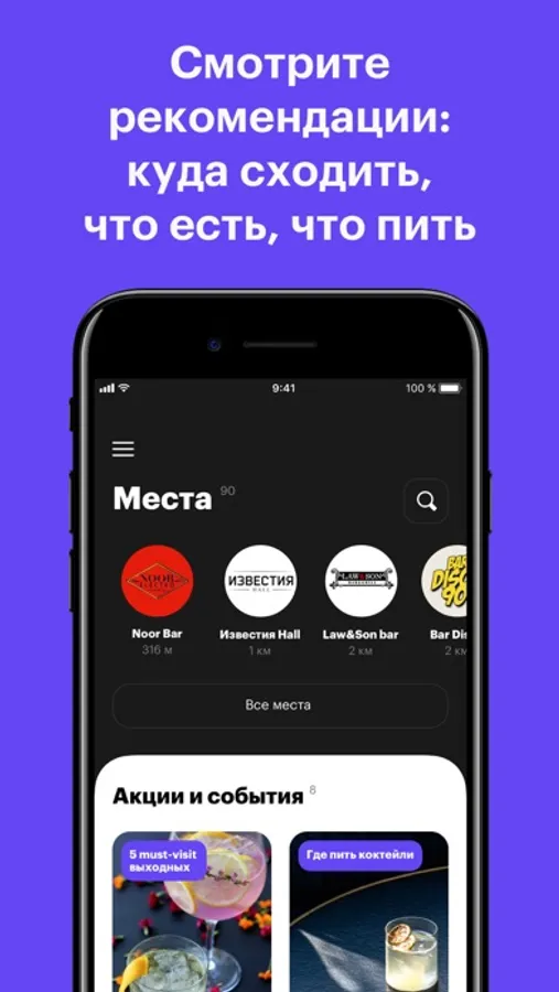 — Explore the full version of their menus with photos, descriptions and special offers; — Order and pay right from the app — in advance or on the spot during an evening; — Get a notification when your drink is ready for pick-up;