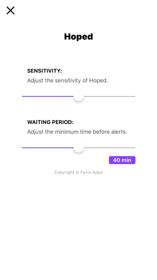 Wake me up when a night terror hits. Hoped is a sleeping assistant that monitors movement patterns throughout the night to play a sound and wake you when movement is detected. Designed to address the nightmare of sleep paralysis, night terrors and nightmares, Hoped uses advanced motion detection algorithms that take advantage of the devices' inbuilt accelerometer sensors.