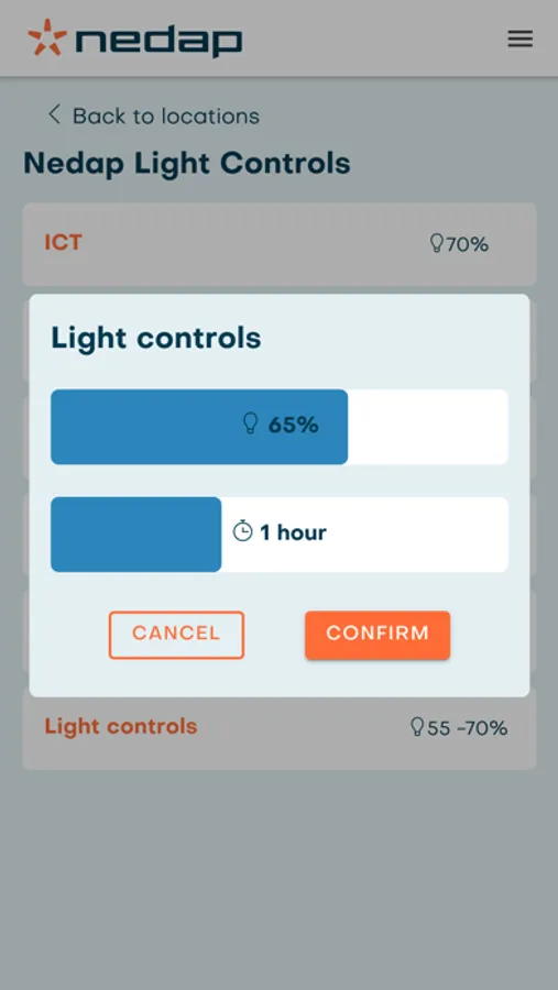 Luxon Switch allows users of Nedap’s online light management platform Luxon to quickly adjust lighting to their specific needs. With Luxon Switch it is easy to deviate from pre-configured lighting behaviour, for example when working overtime or when a higher level of lighting is required.