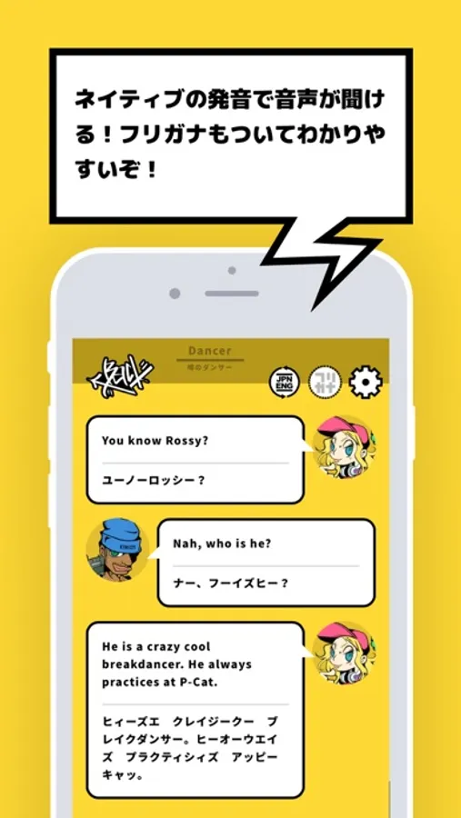 ラップ、DJ、ダンス、バスケ、スケボーの5ジャンルの英会話でヒップでホップな英語を学べちゃいます。