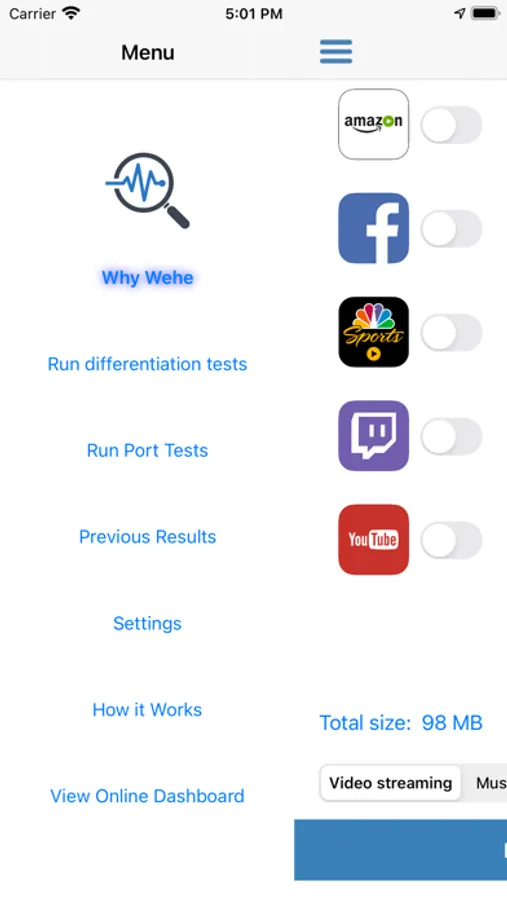 Wehe is an app that runs tests against your network and analyzes the results to let you know if your network provider is restricting or prioritizing traffic for certain applications and certain ports.