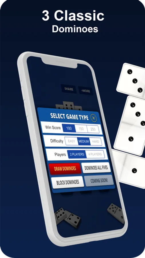 - 3 different modes: Choose your favorite Dominoes mode:Draw Dominoes, Dominoes All Fives and Block Dominoes.