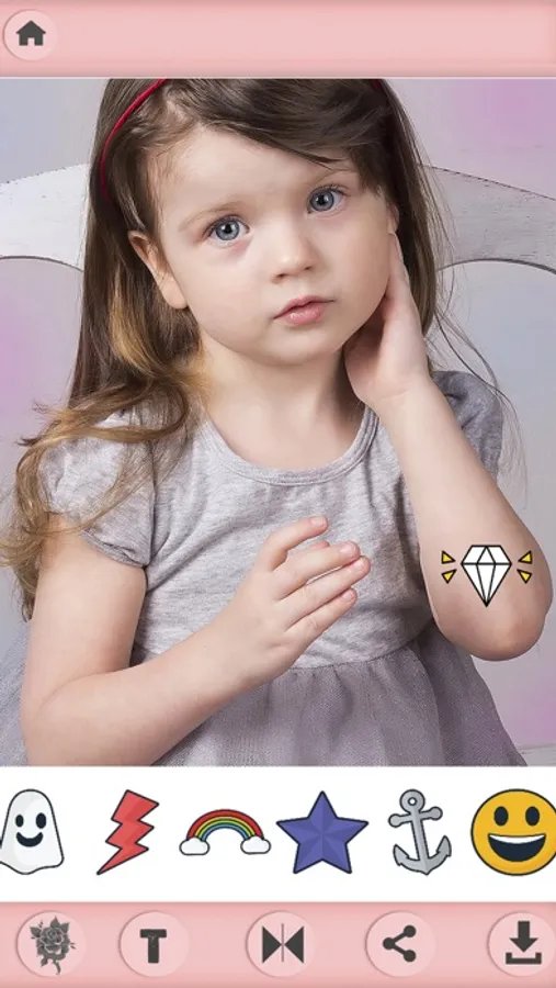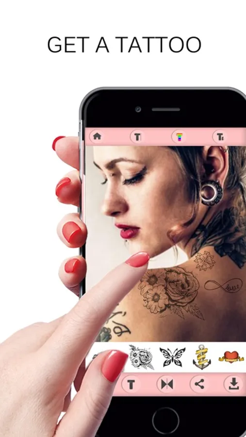 Very useful if you want to see how the tattoo you want to do will look on you. Choose among different options: pets, skulls, things, love or different tribal tattoos and enjoy your photos on a different way by placing and decorate photos with drawings. Use this app to see if you like to see the tattoos on you before you do them, because tattoos are not a game and they will stay forever on your skin.