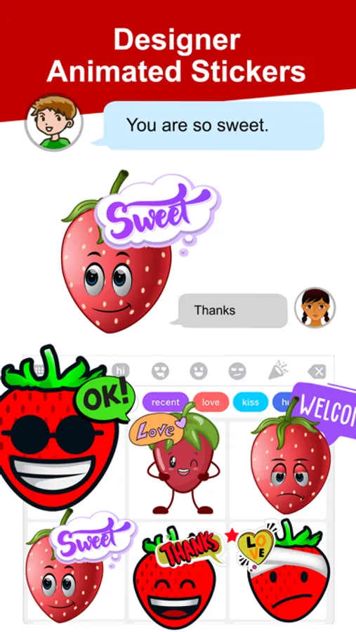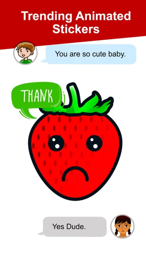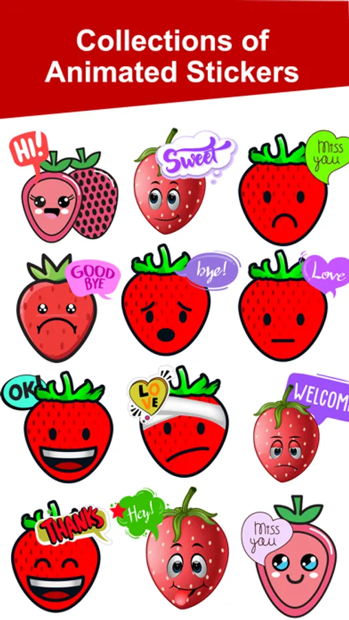 This stickers app is made of texts, common expressions and Strawberries Animated. You can use them anytime to anybody and your messages will be Enjoy