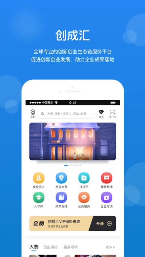 创成汇平台致力于打造全球专业的创新创业生态链,平台以线上系统为服务载体,整合国内外优质双创资源,采用大数据、智慧智能等高新技术理念和互联互享的物联网先进产业模式,从而搭建政府、企业、创投、企服为一体的创服生态链。