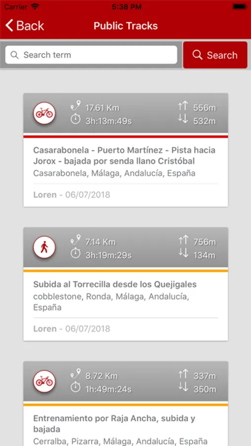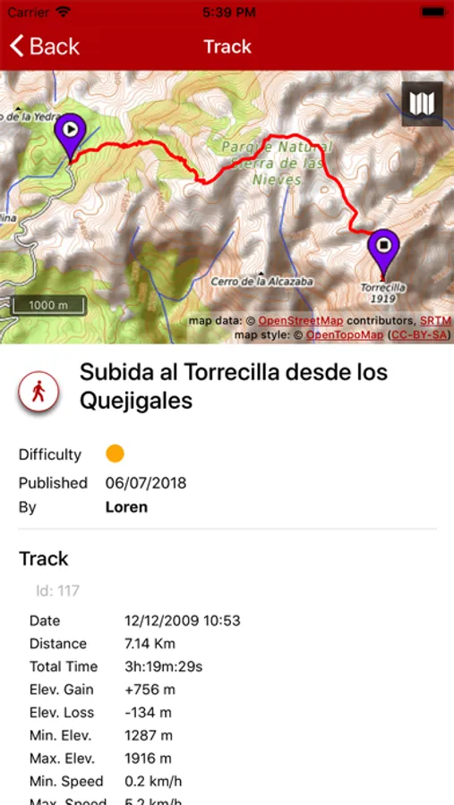 Since the second version of the app we have the "Public Tracks" option: Now we can also publish our tracks, so that any other user can easily view and download our routes. We can also explore and download routes published by other people. Public Tracks contain a classification (type of activity and difficulty), detailed description and pictures optionally. All public tracks can easily be shared with universal links, which will be seen both on the app (if we have it installed) and on the web (otherwise).
