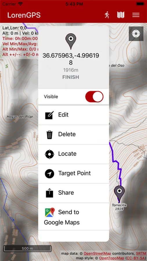 With the third version of the app important new features are added: "Edit Track" (multiple options to edit or modify tracks manually: delete/add points, waypoints, join tracks, reset times, get heights, ...), "Offline Maps" (support for creating and using offline maps: self-georeferenced images with overlapping QR codes. Now the resulting image of a route -with the track painted on the map- can also be used as an offline map), "Rutometer" (option to show a table with the distances and times of passage for each Waypoint included in a track; exportable to Excel/CSV file), and new features to facilitate the loading of tracks and share tracks in different ways (Email, ...)