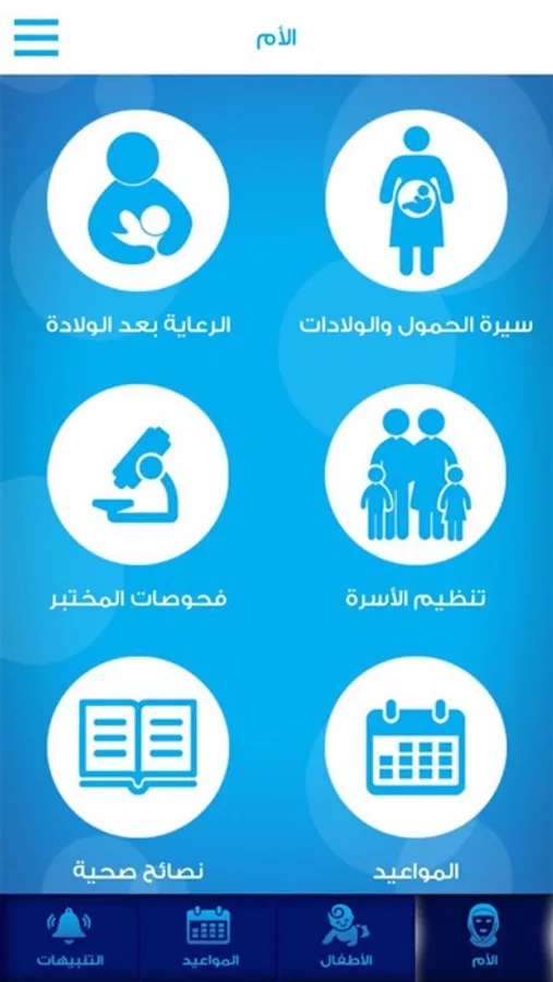 This customized interactive mobile application for UNRWA Palestine refugee mothers has the following main features: