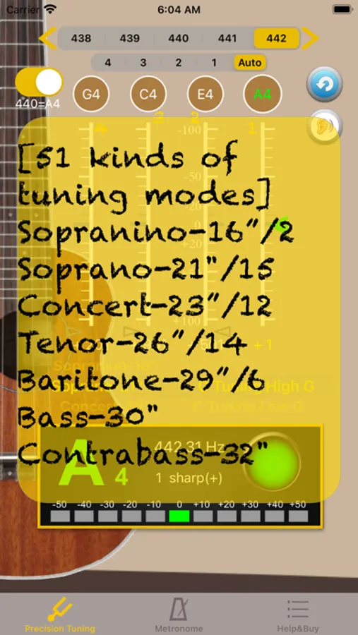 - A4 Frequency adjustment: choose 428~452 frequencies for A4 string.