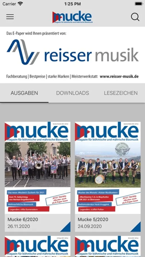 Blasmusik. Die digitale Ausgabe der Mucke bietet den gesamten Inhalt der Zeitschrift, angereichert mit