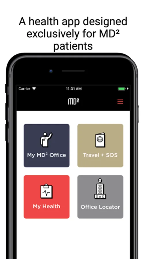 Welcome to the MD² Health mobile application. As an MD² patient, you will have your doctor, your medical information and key emergency resources at your fingertips. The mobile app is one more way for our physicians to stay connected and deliver the highest level of personal care, no matter where your travels may take you.