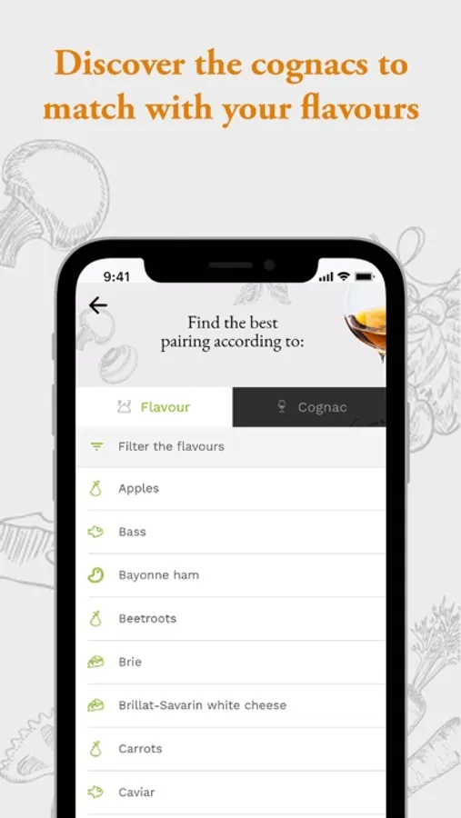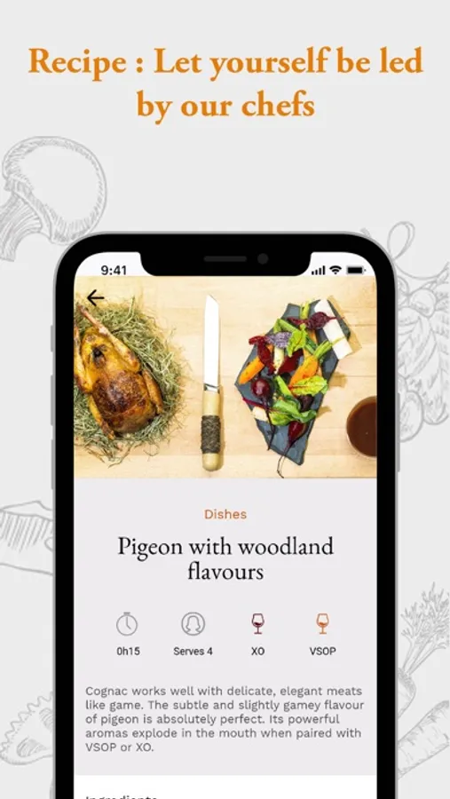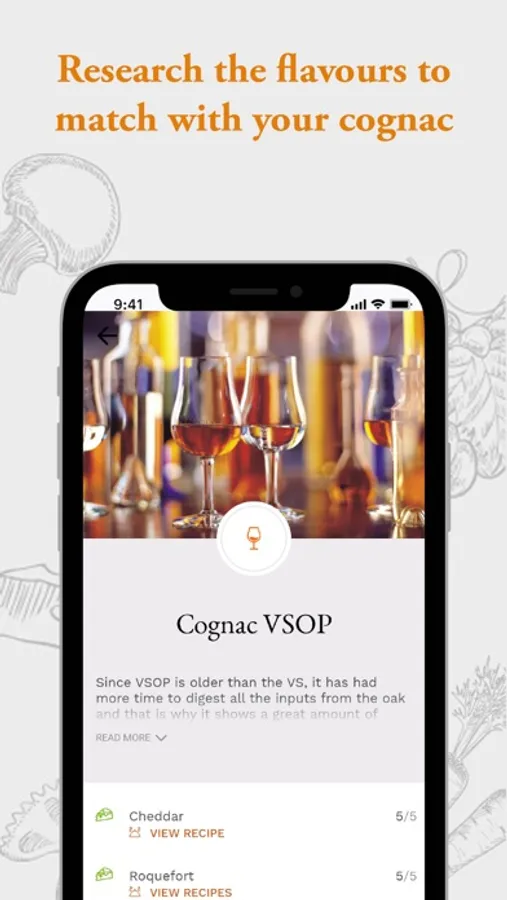 The "Cognac Pairing" app aims to initiate and improve your knowledge when it comes to cognac and food pairing and to help you discover this authentic spirit.