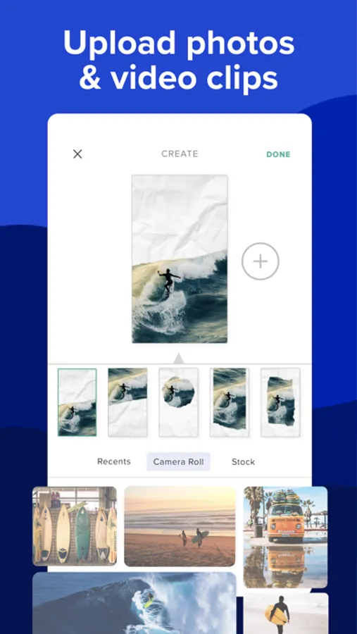 • PROFESSIONAL TEMPLATES: Upload photos & video clips from your phone’s camera or Camera Roll right into our templates. Instagram templates, Facebook templates, Story templates, post templates, video ad templates, and promos.