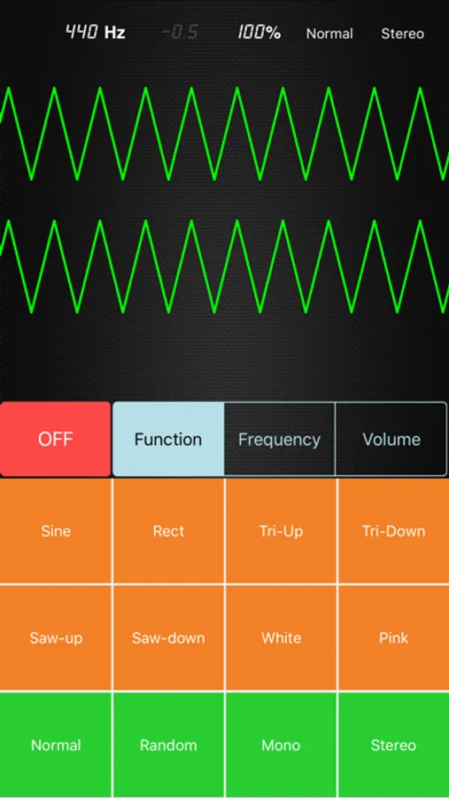 Now you can have a professional grade signal generator for your iPhone. Create sine waves, square waves, white noise, and pink noise.